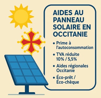 Obtenez toutes les informations à jour sur les aides panneau solaire Occitanie : subventions régionales, primes, TVA réduite, cumul des aides... pour financer votre projet solaire en 2025.